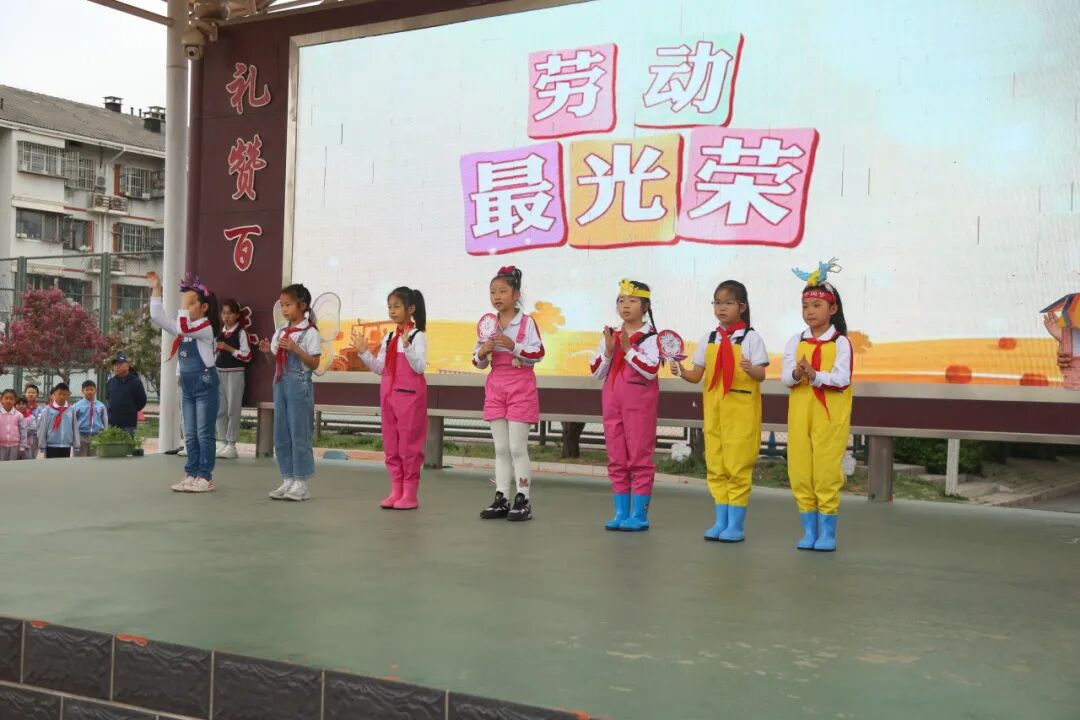 在开耕节上,二年级学生表演《劳动最光荣》。