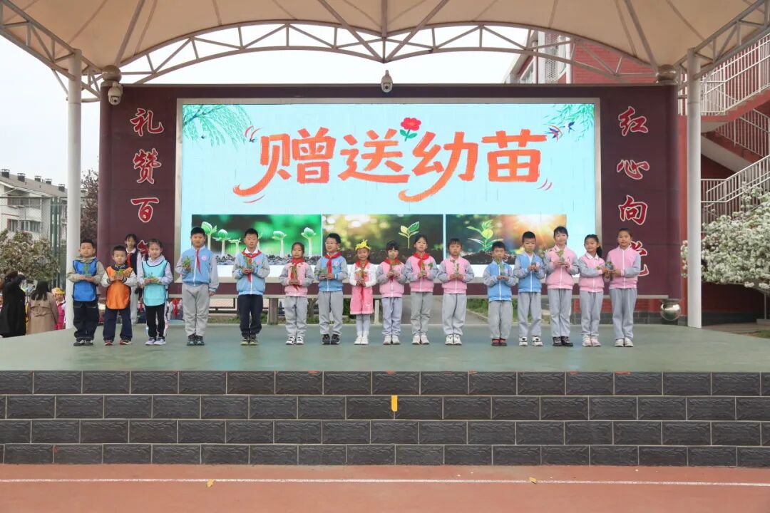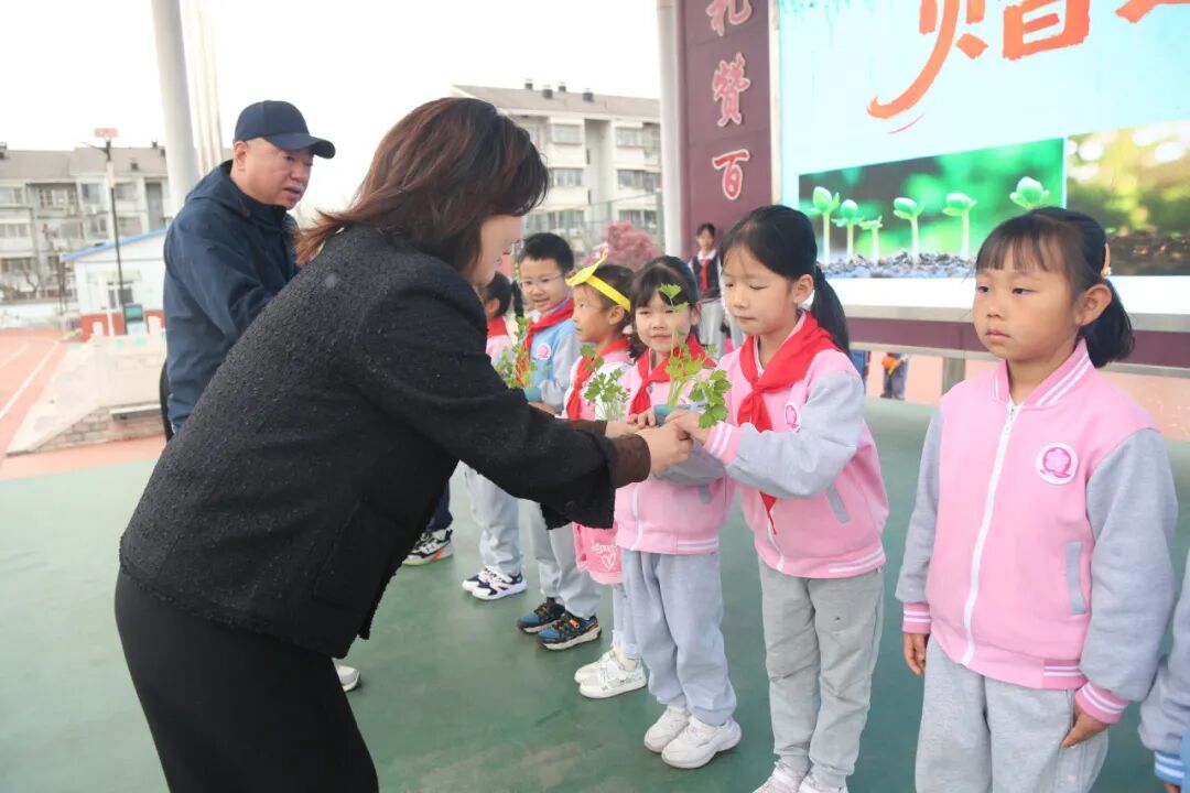 学校给一二年级赠送小菜苗。