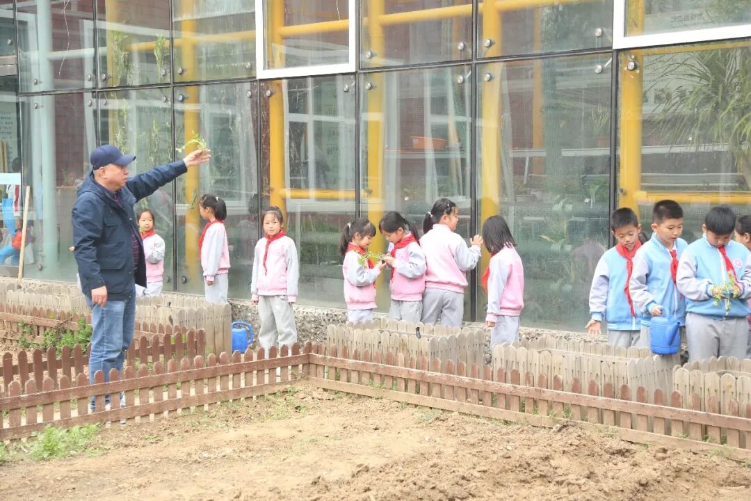 随后,劳动老师带着一二年级同学来到了一米菜园,把一颗颗芹菜苗种植在种植箱里,从挖坑、栽苗、浇水、培土。每个孩子看着一颗颗秧苗长在土壤上,充满了希望的喜悦。