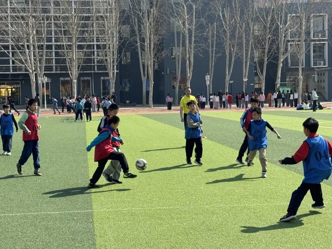 赛场上,小球员们精神饱满、斗志昂扬,带球、传球、抢断、射门等动作有模有样,每一次进攻都全力以赴,每一次防守都顽强坚定。他们奔跑跳跃、默契配合,用汗水诠释着对足球的热爱,用拼搏展现着新时代少年的朝气与活力。场下啦啦队呐喊助威、掌声不断,浓厚的竞技氛围洋溢在整个校园。