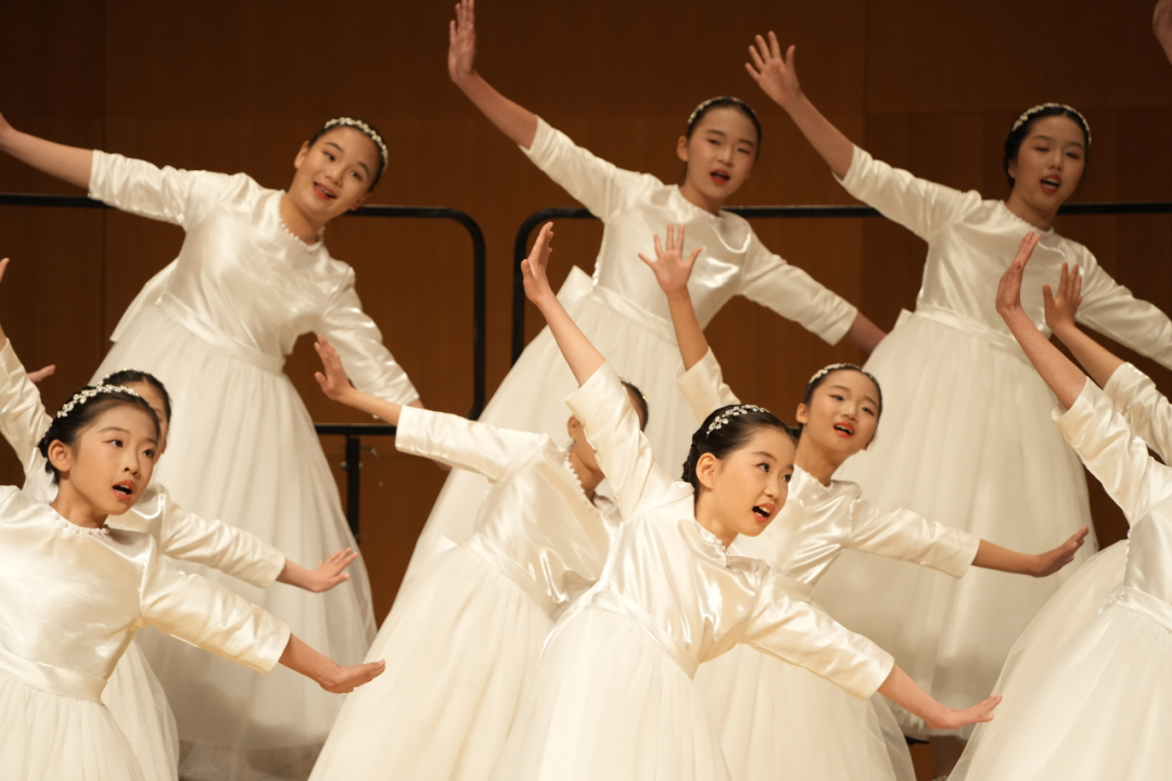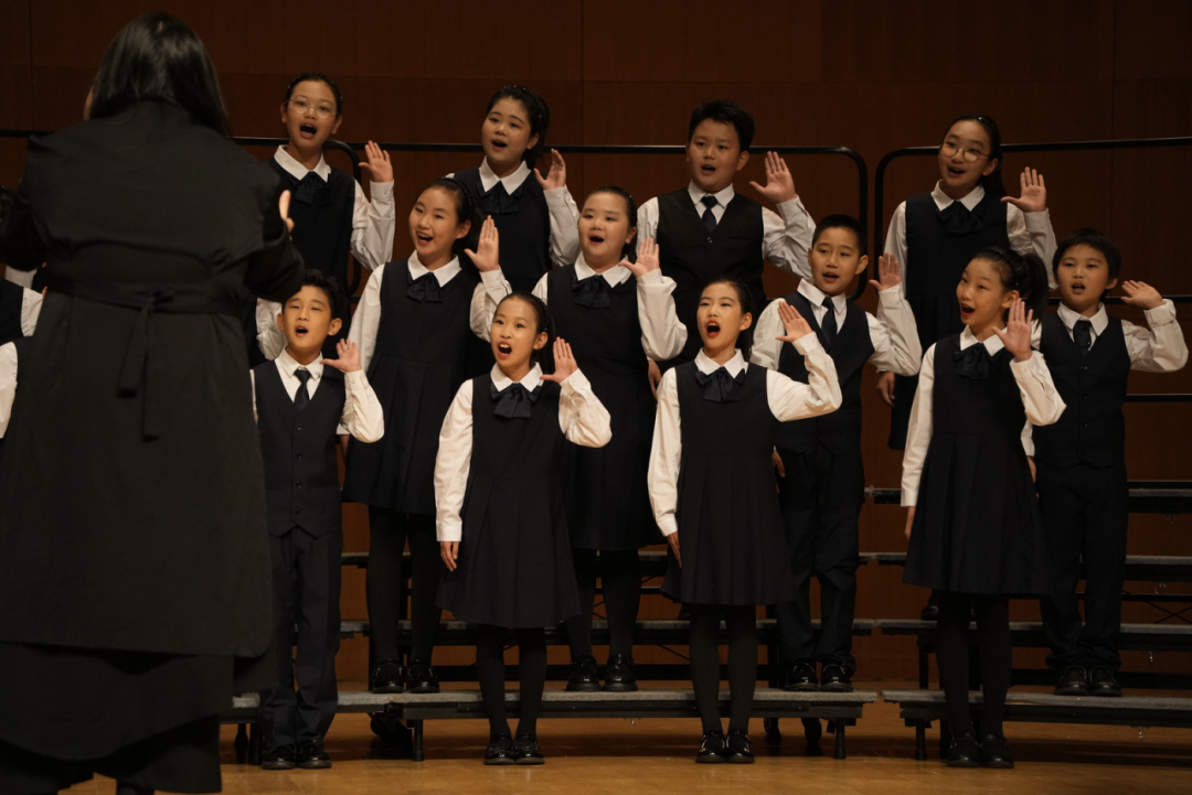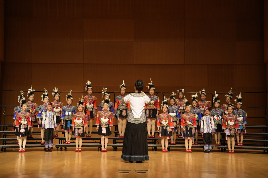 经典自选曲目尽显多元审美与创意表达:海淀区第二实验小学男团《Jai Ho》节奏激昂、声部精准,点燃全场热情;枫丹实验小学《侗歌天籁组曲》融合侗族大歌复调之美与童声纯净,尽显民族艺术魅力;羊坊店中心小学《Danny boy》和声醇厚、情感真挚;中关村第四小学《小园》古韵悠扬,尽显中华古典意境之美;玉泉小学《The bat》诙谐灵动,生动刻画音乐形象;红英小学《明天》、五一小学晋元庄分校《采蘑菇的小姑娘》等作品,或温情婉转,或活泼明快,各具风采。从世界民谣到民族瑰宝,从古典名篇到时代新作,师生以匠心演绎经典,让艺术之美可听可感、可参与可分享,在沉浸式审美体验中实现素养提升与经典传承。
