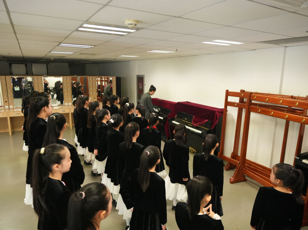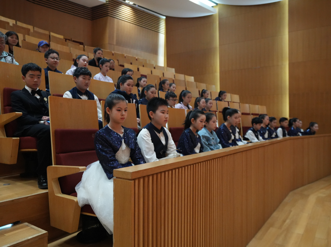 场外候场区,学生队伍整齐有序、物品摆放规范,轻声练习、互助整理服饰,尽显美育浸润下的良好风貌;报到入场准时有序,舞台之上,学子以清澈嗓音、真挚情感演绎合唱艺术之美,多声部和声交织出心灵共鸣;上下场迅捷安静、分工明晰,以规范举止诠释秩序之美、协作之美,构成一曲无声的文明乐章。