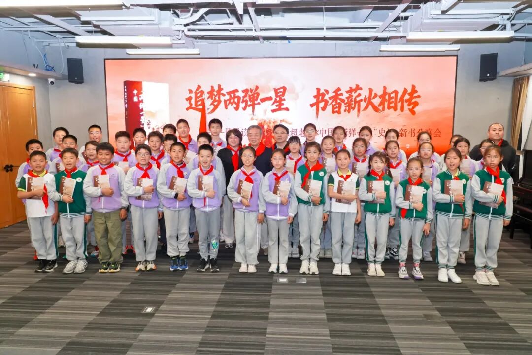 活动尾声,每一位小读者都手持由彭老师亲笔签赠的《中国“两弹一星”史话》。近两百页,几十年历史,一个人近三十年的亲历与记录。合上书,分量犹在。有些故事,等待被读到,才算真正完成。正如关校长说道:“今天能亲耳聆听彭老师这样的“两弹一星”亲历者讲述国家从一穷二白到挺起腰杆的历程,格外激动。今天这颗种子,真的种下了!”。