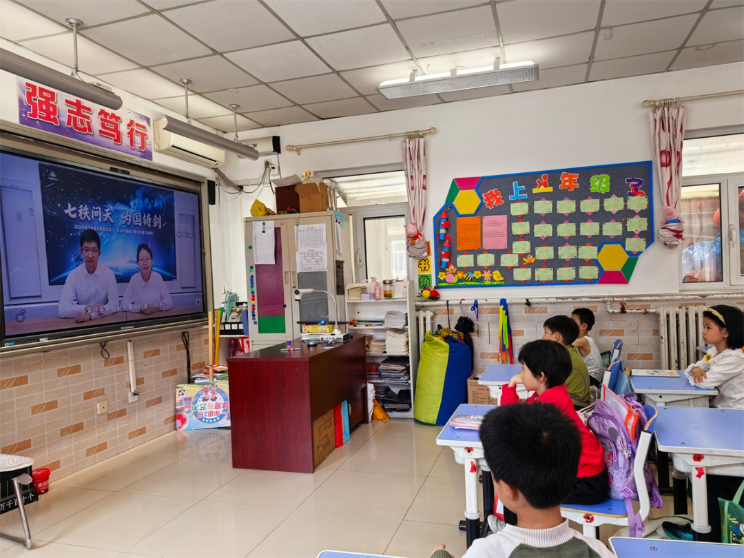 作为全国天文教育共同体牵头校与航天特色学校,航天图强小学高度重视本次活动,精心组织全校师生集中观看,并联动共同体 8 所成员校同步开展线上学习。课堂上,同学们跟随镜头聆听航天故事、了解航天发展历程,在跨越时空的科普盛宴中,深刻体会中国航天 70 年从无到有、从弱到强的奋斗之路。