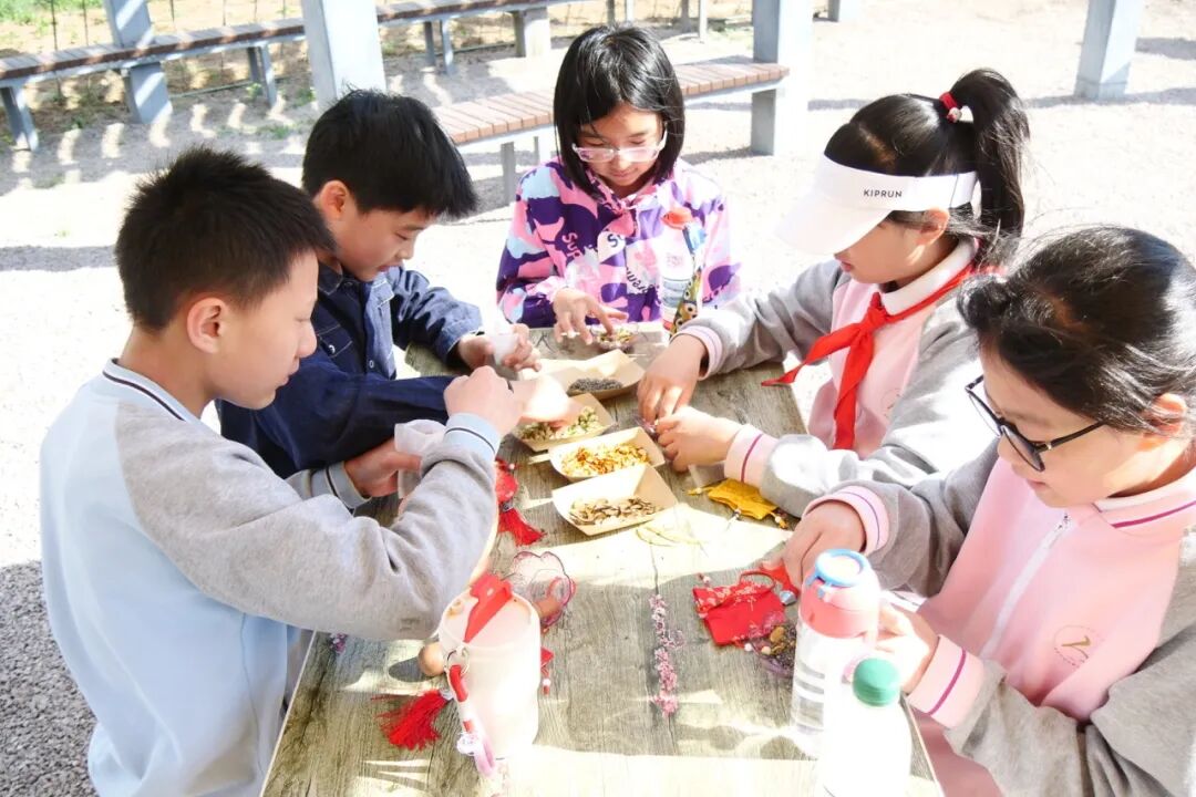 传统与文化交融的中草药香囊制作:队员们跟随辅导教师认识田间常见药用植物,了解草药采收、晾晒的传统习俗,亲手挑选、研磨、装填香料,制作专属中草药香囊。过程中,队员们不仅认识了艾草、薄荷等药用植物,更近距离接触了中医药文化与农耕文明的结合,增强了对中华优秀传统文化的认同感。