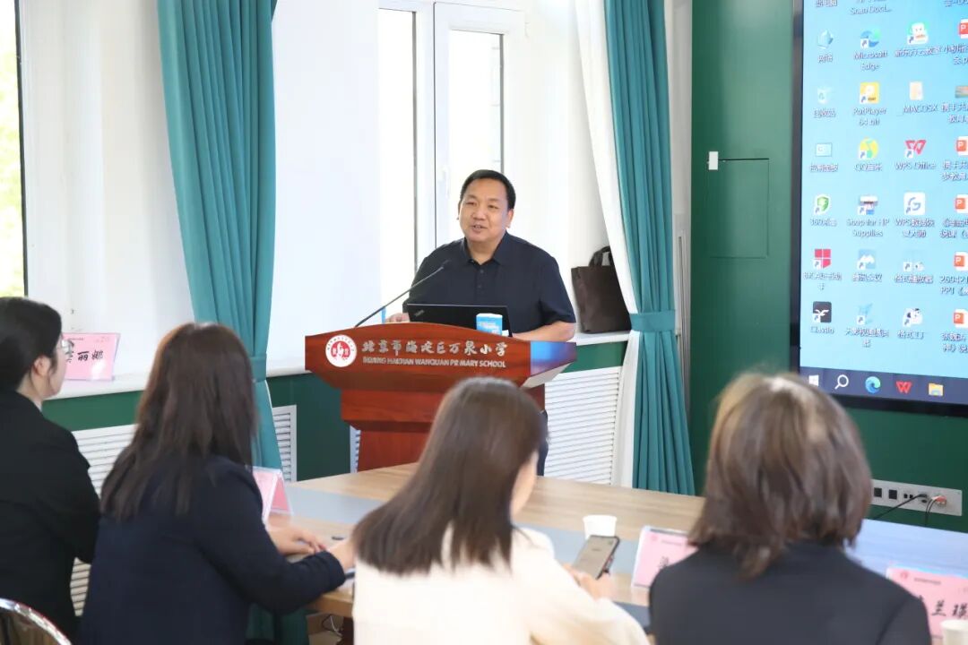 课堂之外,海淀区教科院课程中心研究员鲁小凡主持了本次推广会的分会场并做分享,来自北京市5所课程丰富的兄弟学校的相关领导也受邀来到课程建设工坊,围绕学校课程体系构建、始业课程、科学教育、大思政育人、阅读课程、科技课程等主题开展专题分享与深度交流。