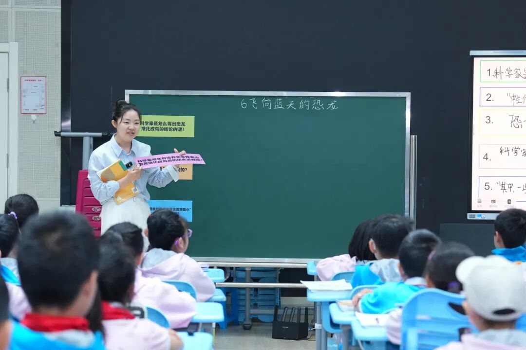 本课为四年级语文科普文精读课,融合科学探究精神,紧扣单元语文要素“阅读时能提出不懂的问题,并试着解决”,践行 “问题为引、策略为核、AI 赋能、学用合一” 的教学理念。课堂以学生预习真实疑问为起点,筛选有价值的问题,梳理科学探究逻辑;在 “金牌解说员” 的实践情境中,借助“理顺序”“明主次”“讲准确”三大策略,对恐龙演化成鸟类的过程进行探究。并创新引入 AI 解说教练,为学生提供一对一即时点评与个性化指导,破解了大班额教学差异化指导盲区,让学生在个性化的即时反馈中落实语用实践,全方位培养综合语文素养与科学探究能力。