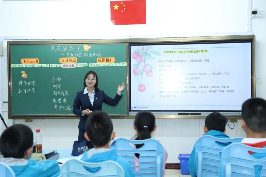 本节课聚焦校园果皮随意丢弃的现实问题,围绕主题《果皮焕新记——变废为宝 向美而行》开展项目式学习。课前各小组已明确研究方向,整合汇总组员搜集的各类资料,为本课探究筑牢基础。