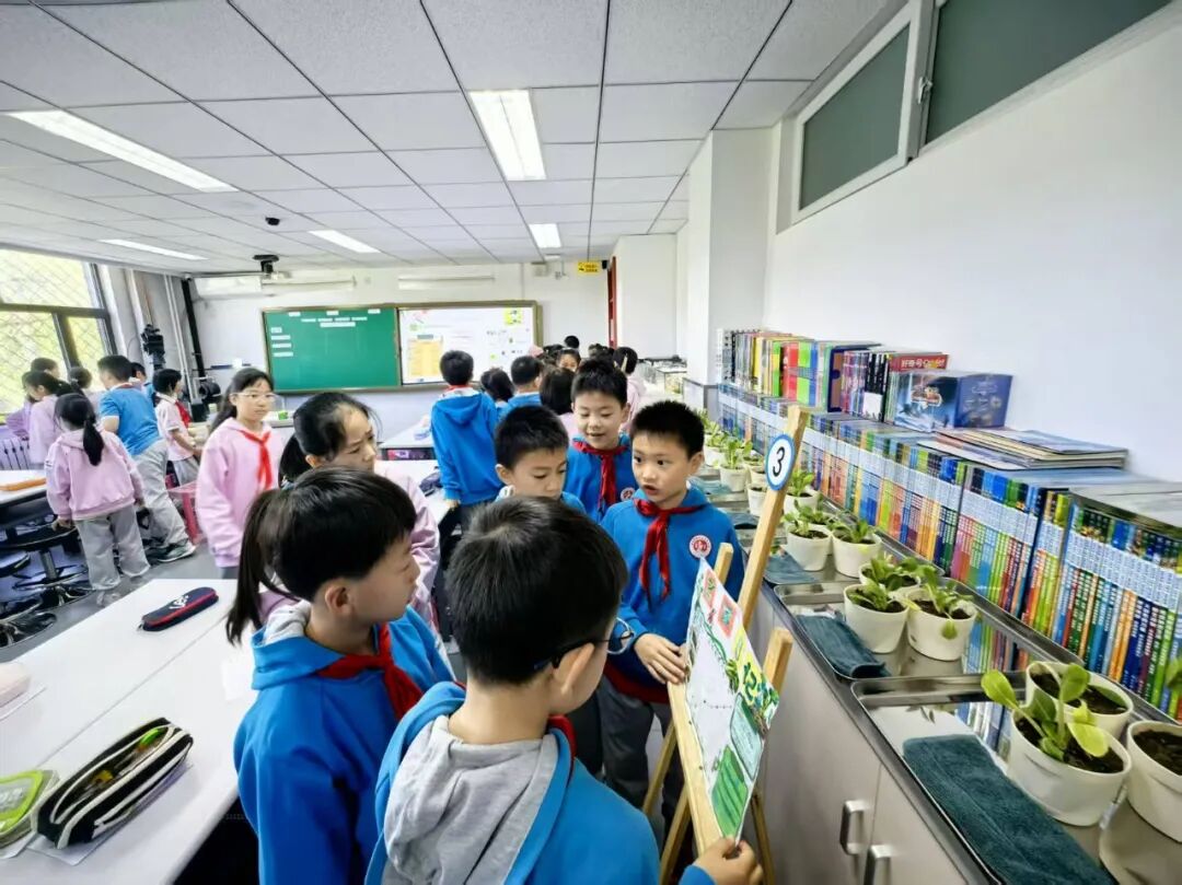 各小组将《打卡日记》按分类顺序整理成册,图鉴初稿悄然诞生,一本有温度的自然伙伴图鉴,正从孩子们的指尖徐徐展开。方寸卡片间,寻四季之律。孩子们打破学科壁垒,自主探究、小组协作,在亲近自然的过程中活用数学知识,实现综合素养生活化、趣味化提升。