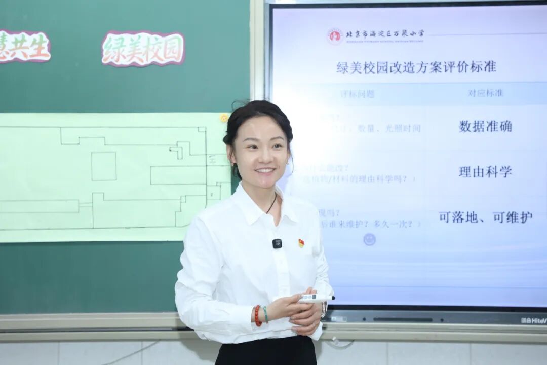 《把爱写进方案里》是六年级跨学科项目 “智慧共生・绿美校园” 的子任务,解决 “为什么这样” 的问题。前期,学生测量并绘制校园平面图、调研植物生长与生态环境、优化海报版面设计,多学科融合为改造方案奠定了扎实的科学基础与视觉呈现。本节课引导学生从 “研究者” 转向 “毕业生” 视角:第一轮修改中,学生共同研讨增补新评价标准,不仅让方案更严谨周全,更深刻理解了 “智慧共生・绿美校园” 的内涵 —— 真正的绿美,是让校园里的每一个人都被关照、被尊重;第二轮借助《故事心语卡》唤醒六年校园记忆,将真实故事与内心情感注入方案,将真实情感融入方案,撰写有温度的介绍语。两轮修改层层递进,让理性数据与人文关怀相互交融,使改造方案真正成为献给母校的一封情书。