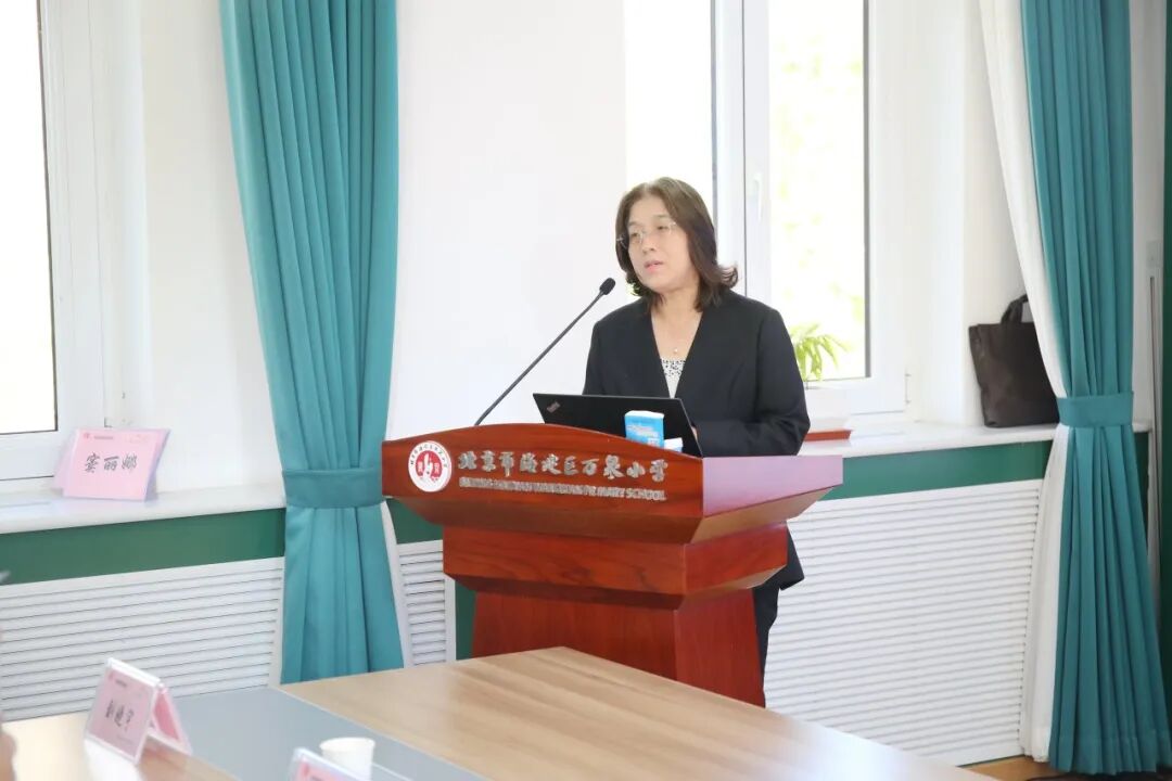 人民教育出版社人教研究院办公室主任、课程专家、博士牛瑞雪在发言中回顾了24年前在万泉小学调研的经历,充分肯定了学校在科研引领与课程建设方面的扎实成果。她指出,课程建设应深度回应社会、知识与学生三个要素,像劳动教育与生态文明课程之所以获得市级大奖,正是因为契合了党和国家关注的教育方向,蕴含着社会主义意识形态的价值引领。她建议学校进一步对标总书记相关思想,使育人点更准、立意更深,从而让课程真正成为落实立德树人根本任务的载体。