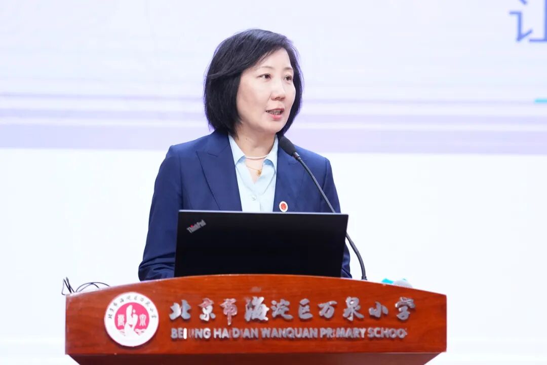 海淀区教科院副院长王瑞在致辞中指出,未来人才培养需要跨界思维与创造能力,高质量育人应以“新域新质”为载体。“新域”重在拓展教育边界,打破校园、学科学段壁垒;“新质”重在提升教育质量,变革学习方式。她表示,海淀区联动科技科研资源,以课题研究推动项目化与跨学科学习,,构建了生态赋能、课程破壁、五育融通、全环境落地的育人生态。后续将持续锚定人才培养目标,迭代课程,融入跨学科内容,开展真实情境、项目化、大单元教学,形成多元化课程体系。