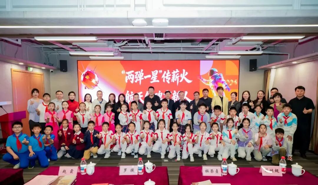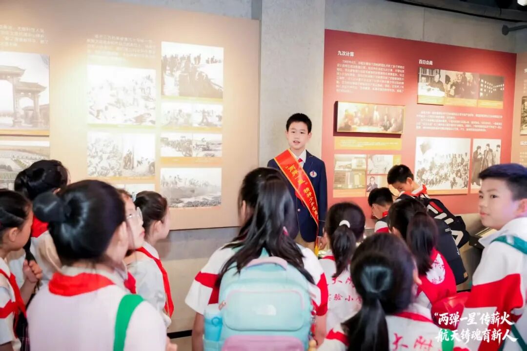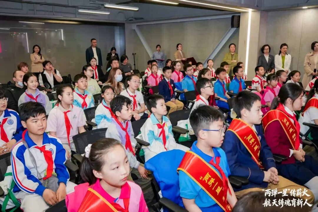现场同步开展“两弹一星”教室专家聘任、“两弹一星”精神少年志愿宣讲团组建工作。全体少先队员高举右拳庄严宣誓,铮铮誓言铿锵有力,许下传承红色基因、立志科技报国的青春承诺。