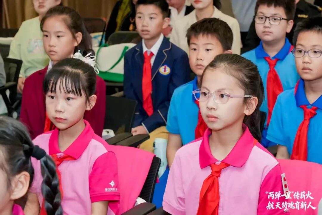 少年承薪火,逐梦向未来。活动中,少先队员代表登台发言,以少年之声致敬先辈,用真挚语言讲述“两弹一星”奋斗故事,抒发崇尚科学、报效祖国的远大理想,展现新时代海淀少年的责任与担当。