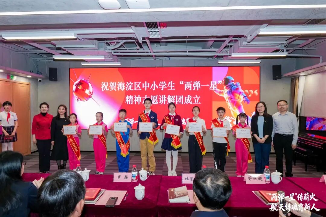 海淀区委教育工委书记杜荣贞为“两弹一星”教室正式授牌,标志着海淀区十大教室之“两弹一星”教室特色教育阵地全面落地。今后,“两弹一星”教室将作为弘扬科学家精神、传承中关村创新精神的重要载体,成为中小学生涵养科学素养、感悟先辈初心、汲取奋进力量的沉浸式实景课堂。