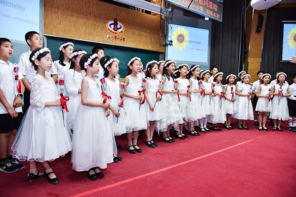 学校“九点阳光”合唱团的小朋友们用优美的歌声迎接客人们的到来,温暖的歌声就像早晨九点钟的阳光一样,照亮每一位小伙伴的心灵。师生合唱《最好的未来》,是爱心的传递和撒播,正如歌词中所唱,每种色彩都应该盛开,每个孩子都应该被宠爱。