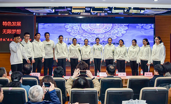 4月3日,“人分BIGUP清唱社”的同学们以阿卡贝拉式的无配器清唱法,表演了《青花瓷》和《try everything》,惊艳全场,拉开了“立德树人 特色发展 有限校园 无限梦想”人大附中分校“新品牌学校”建设成果展示汇报的序幕。校长徐利介绍了学校的发展历史和开展新品牌建设的思考与实践。