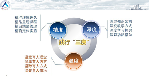 ▼“温度”是用教育者的真爱撬动学生情感的杠杆,使其从要学习,到会学习,到发展性学习,直至“爱上学习”,成为享受学习的终身学习者。与“精度”和“深度”相比,学校认为最重要的还是“温度”,要将“温度”渗透到教育教学的方方面面,坚持开展有温度的教育。