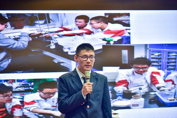 在新品牌展示环节,学校化学组汇报了《一个“学生教研员”的成长》。高二五班的周天行同学在化学学习方面有浓厚的兴趣而且成绩突出,在帮同学们答疑解惑各种化学试题的过程中,慢慢发现了同学们知识点上的共性问题,就把这些问题总结归纳起来,反馈给化学老师。化学老师了解同学们的真问题后,感到与其用答疑的方式进行滞后性的弥补,还不如在教学上进行前瞻性的设计。老师改进了课程,取得了很好的效果。周天行成了沟通老师和同学的纽带,他来自于学生,又能辅助老师的教学,学校吸纳他为“学生教研员”。