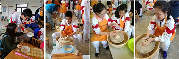 景德镇研学组的同学们在出发前,语文老师进行了瓷器发展、博物馆探源的多文本阅读,同学们在景德镇大学停留了两天用来切身体会陶器的制作和瓷器的上色。