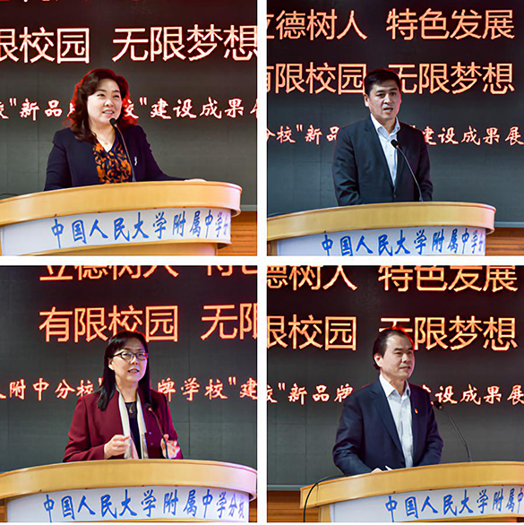 新品牌展示活动让大家看到了学生朝气蓬勃、教师敬业温暖的人分。活动中,区委教工委书记尹丽君、首师大副校长杨志成、海淀区教师进修学校校长罗滨、人大附中联合总校常务副校长杨连明等领导嘉宾先后致辞、点评,表示人大附中分校将人大附中的精神本土化,落地生根,形成了奋进的人分精神;“精度、深度、温度”以教育家刘彭芝“爱与尊重”的思想为基础,是人分从人大附中的成功育人经验中提取的优质教育密码,“三度”铸就了人分未来教育的底色,照亮了学生和教师的成长,在新品牌建设中实现智慧升级。学校深化教育研究、开展探索创新,切实关注教育教学的育人功能,让学生的个性成长得到关注和满足,传授学生受用一生的学习方法,真正体现了教育人的博大情怀和使命担当。