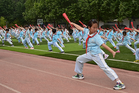 依据学校生源输入省份多且流动性大的特点,为了弥补学生学前教育方面的欠缺,学校在大力开展“四敬课堂”研究的同时,在低年级开设礼仪教育,引导他们从小做一个知礼、懂礼、守礼的新时代少年;在中高年级开设《故土教育》——寻根校本课程,对学生进行爱家乡、爱祖国的教育。学校注重传统文化的发展与传承,开设以“礼乐射御书术”为课程指导的“六艺”拓展课程,以及中华经典诗词诵读活动,丰厚学生人文底蕴。