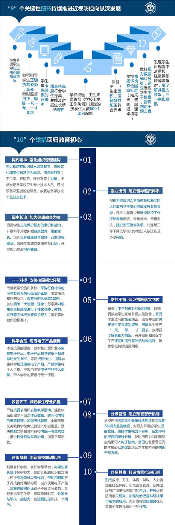 海淀教育有着体量大、样态多、门类全、质量高、影响广的显著特点,要想防控住近视,避免高度近视的发生,我们既要总揽全局、加强顶层设计,又要细致入微、制定符合学校实际的防控细则。那么,海淀区的近视工作是怎么开展的呢?通过一组数字来了解一下吧!