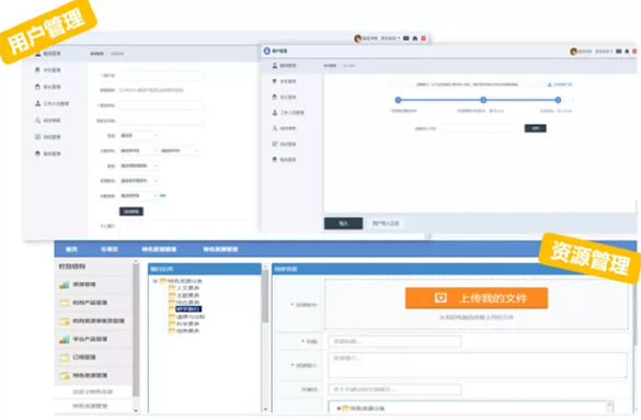 平台面向学区、学校提供管理应用功能,包括用户管理、资源管理