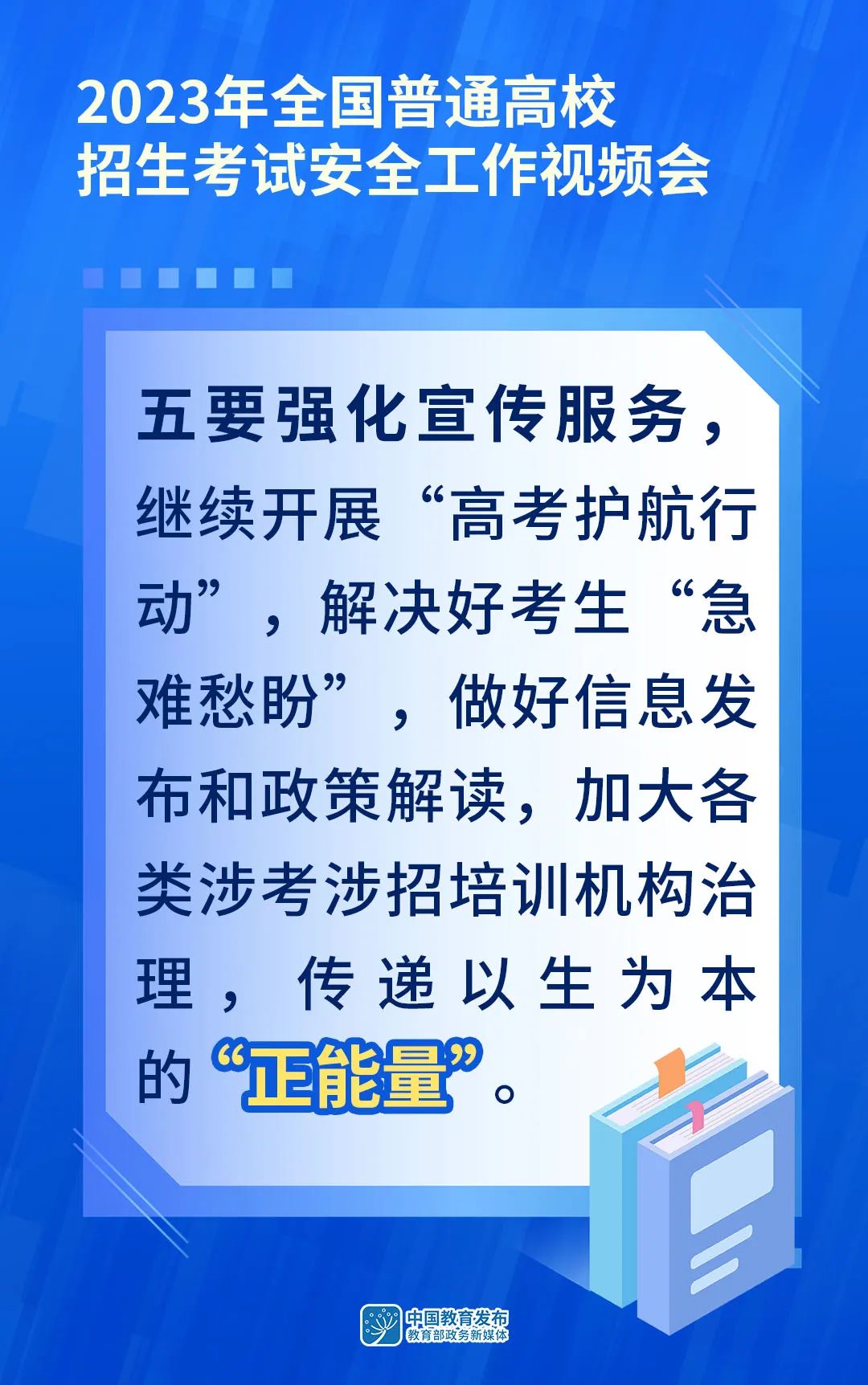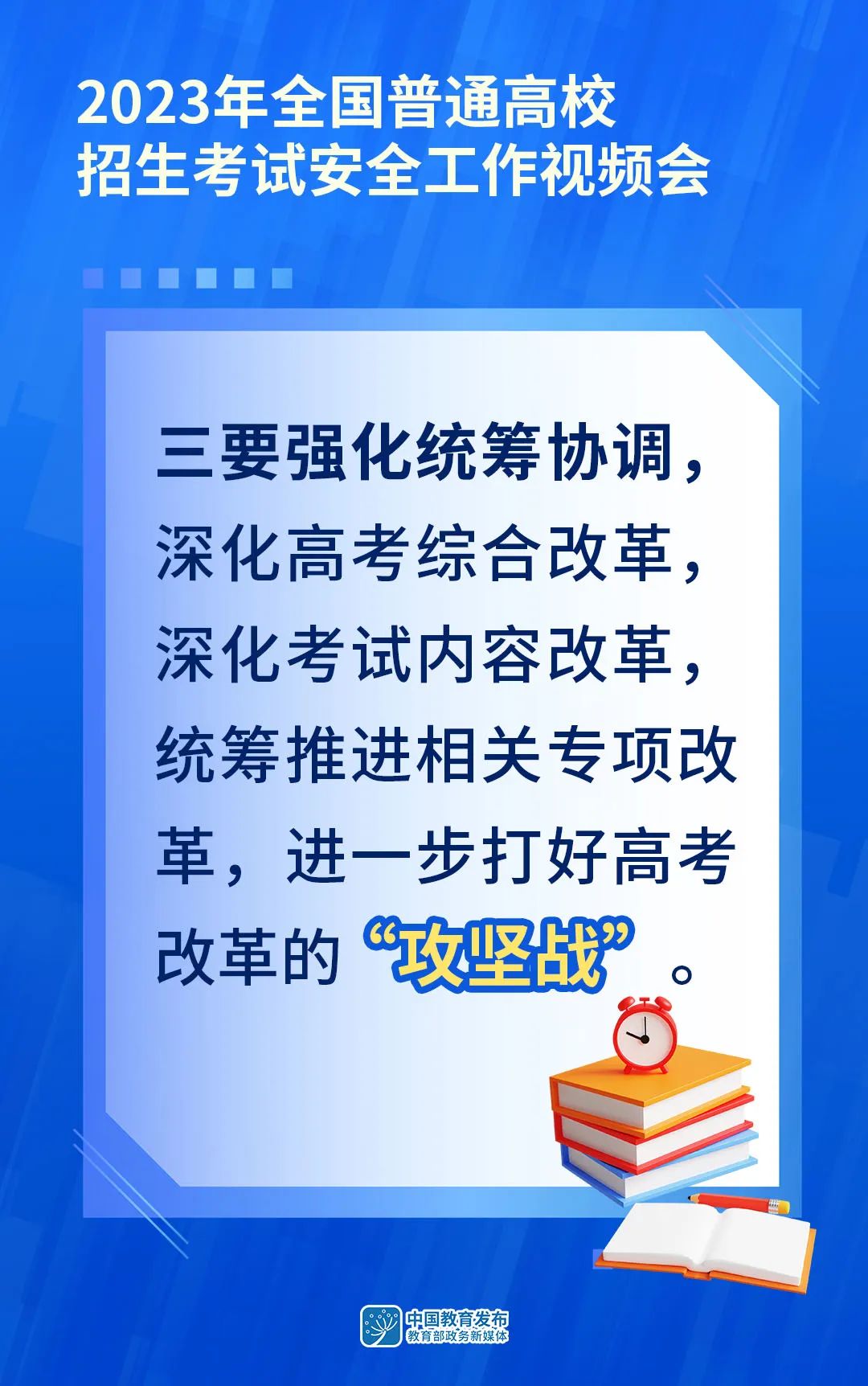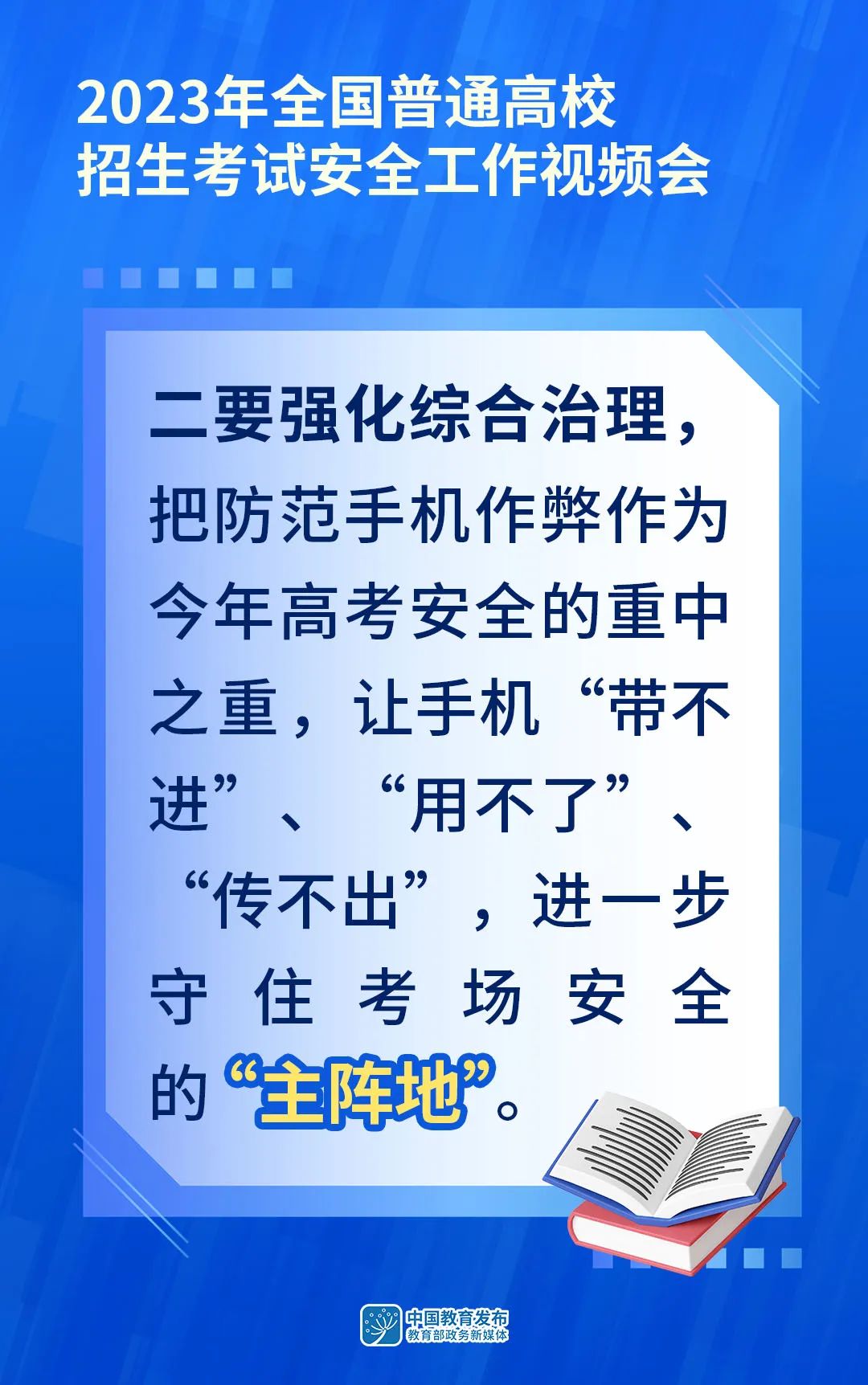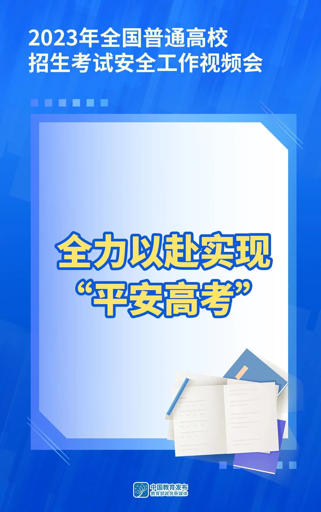 日前,教育部会同有关部门召开2023年全国普通高校招生考试安全工作视频会,就全力以赴实现“平安高考”目标任务提出明确要求。一组大图带你看——