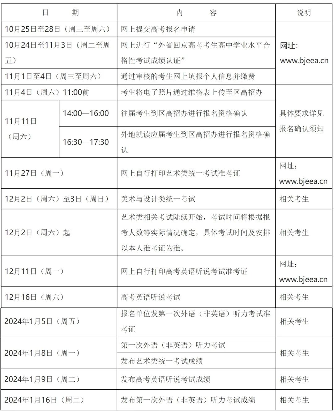 考生应于2023年11月27日开始在北京教育考试院网站(www.bjeea.cn)自行打印准考证,具体考试时间及安排以准考证为准。
