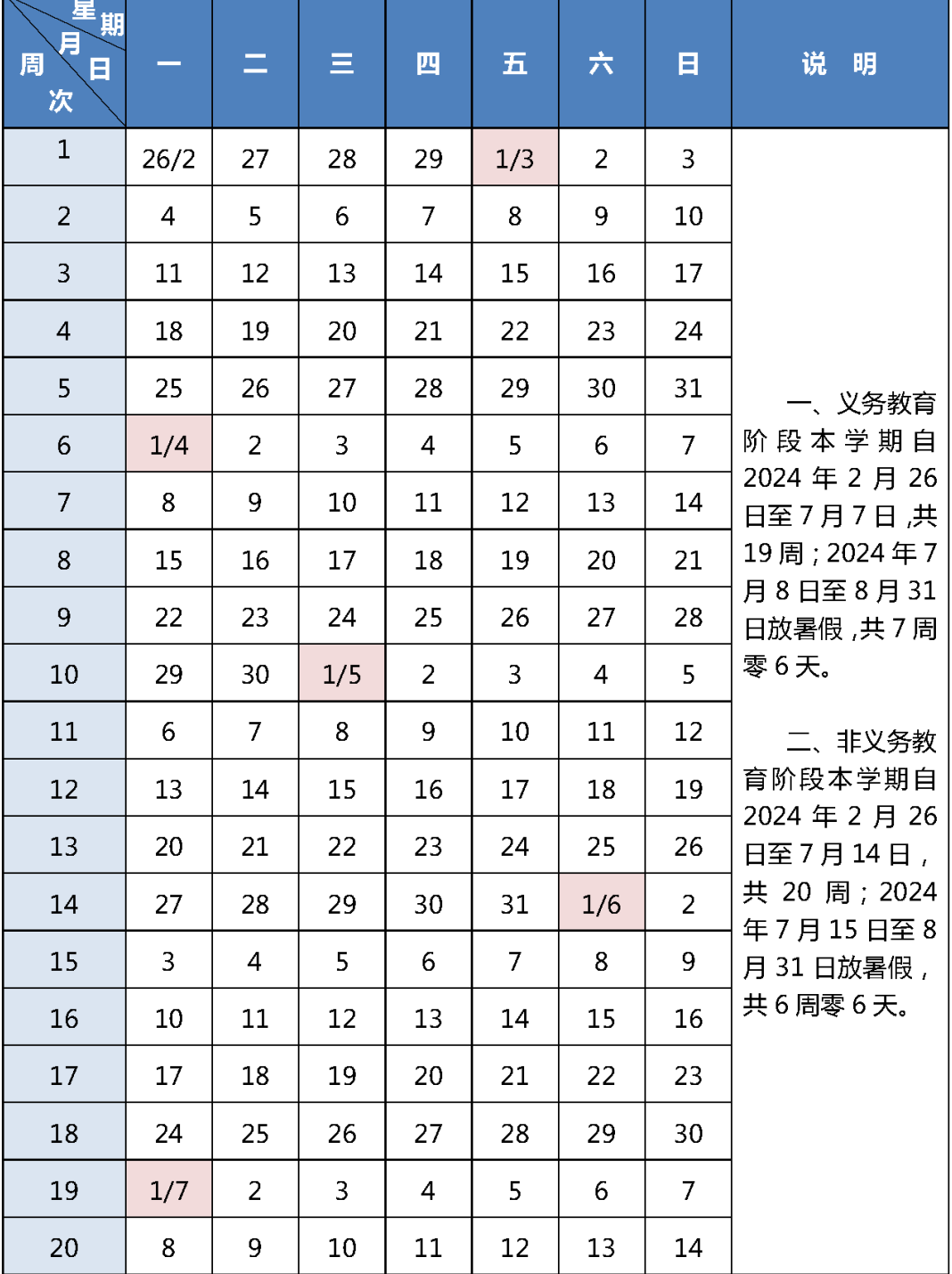 2025年7月6日(星期日)结束本学期工作,共20周;