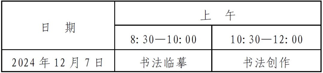3. 考生参加考试,只能携带以下考试用具:毛笔、墨汁、砚台、毛毡、黑色签字笔、铅笔等,不得携带尺子、书法工具书、吹风机等。