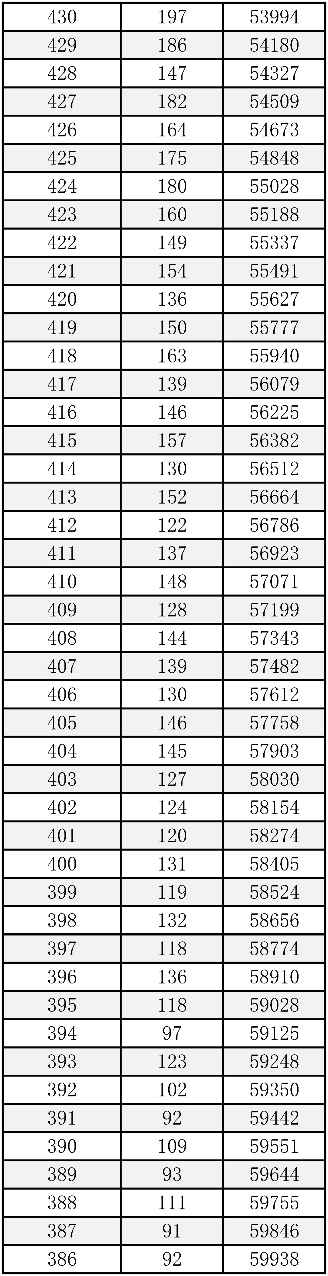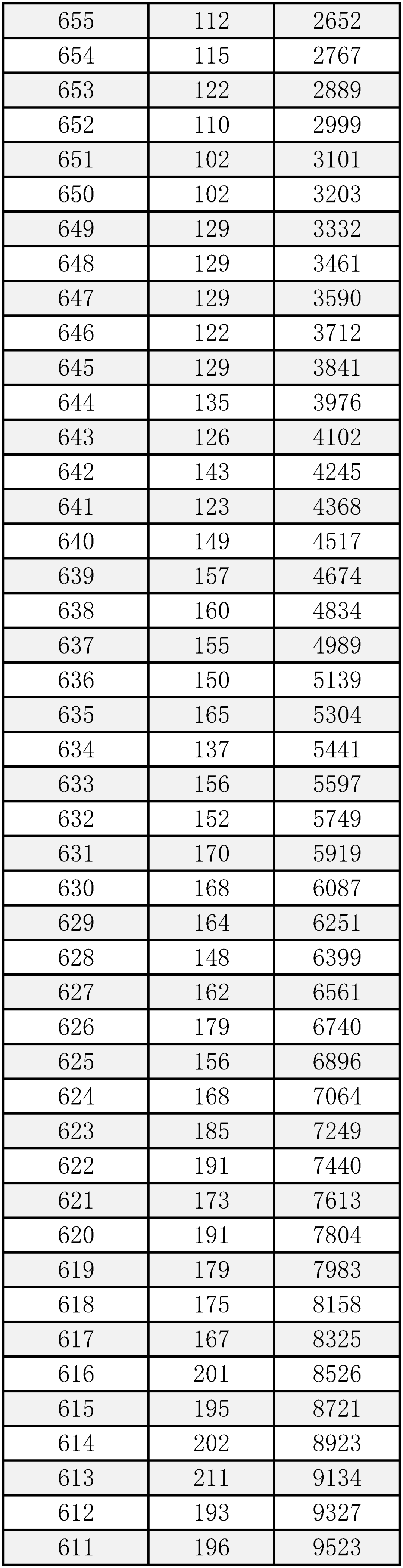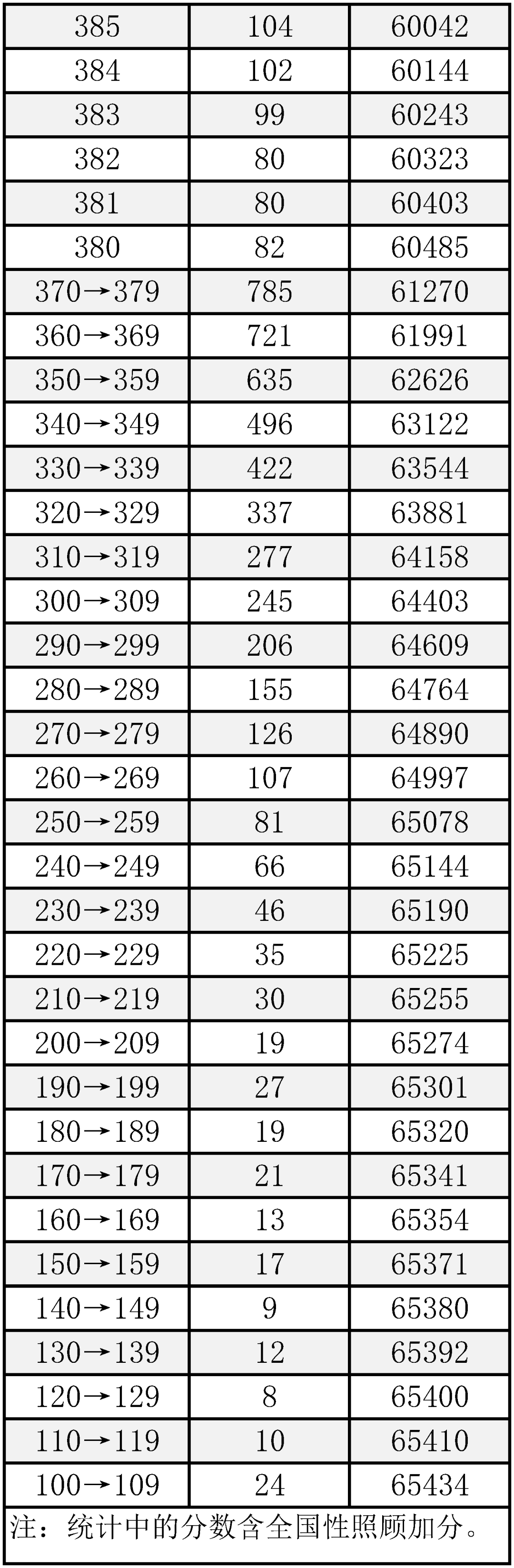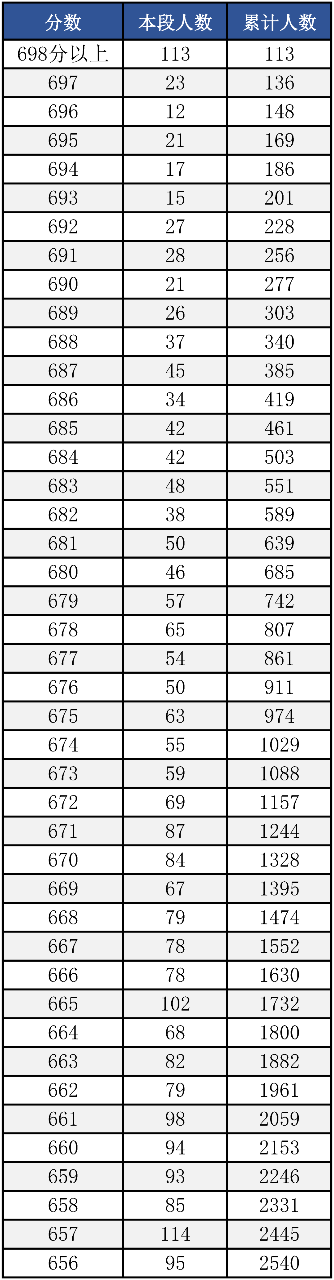 “成绩分布统计表”是以“一分”为单位,统计考得该分数的考生人数和累计人数,每一个分数段上有多少人一目了然。考生通过分数分布表可以查询到相关成绩在全市的排名位次,方便对自己进行定位。