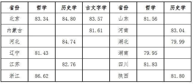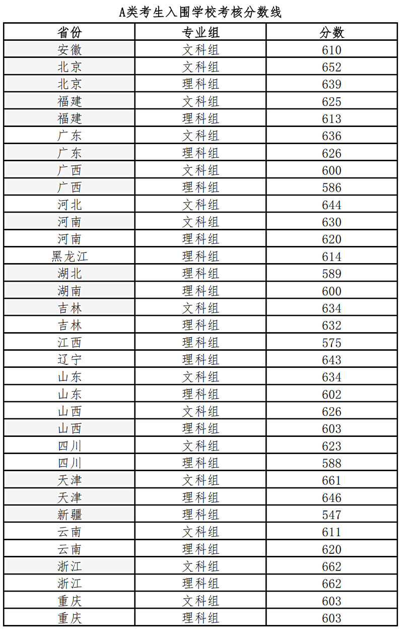 注:综合成绩=0.85×(高考成绩(不含加分)/高考满分)×750+0.15×(校考成绩/校考满分)×750;校考成绩=0.6×(初试成绩/初试满分)×校考满分+0.4×(复试成绩/复试满分)*校考满分;上海高考满分为660分,其他省份高考满分为750分。