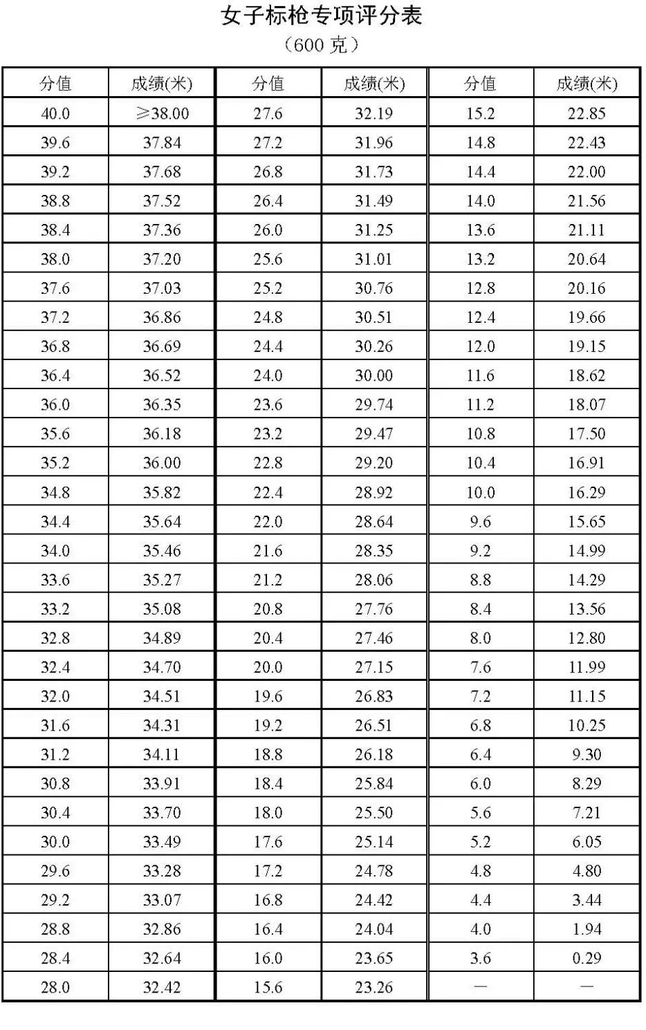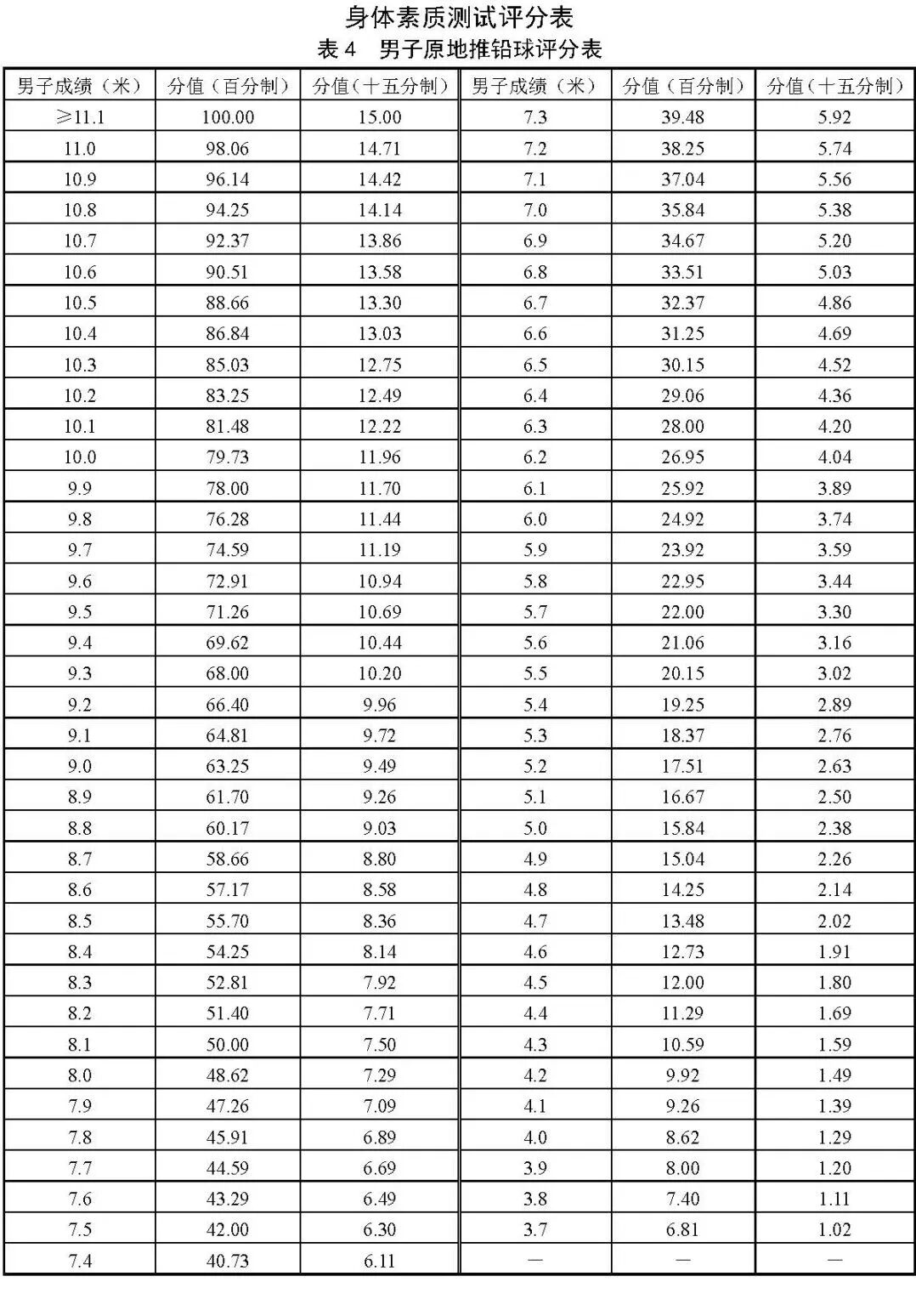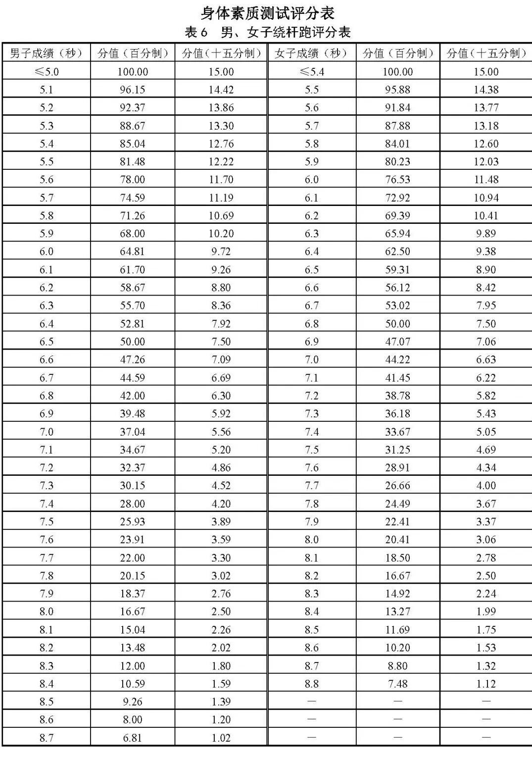 身体素质考试项目包括4项:100米跑、绕杆跑、立定跳远和原地推铅球(男6kg,女4kg )。