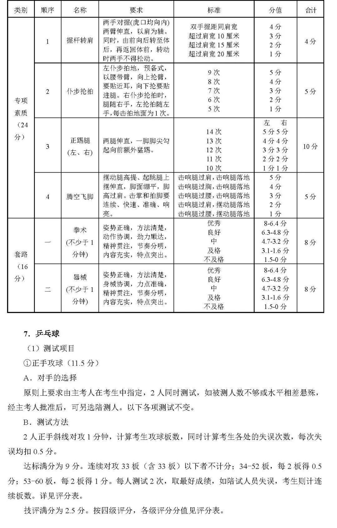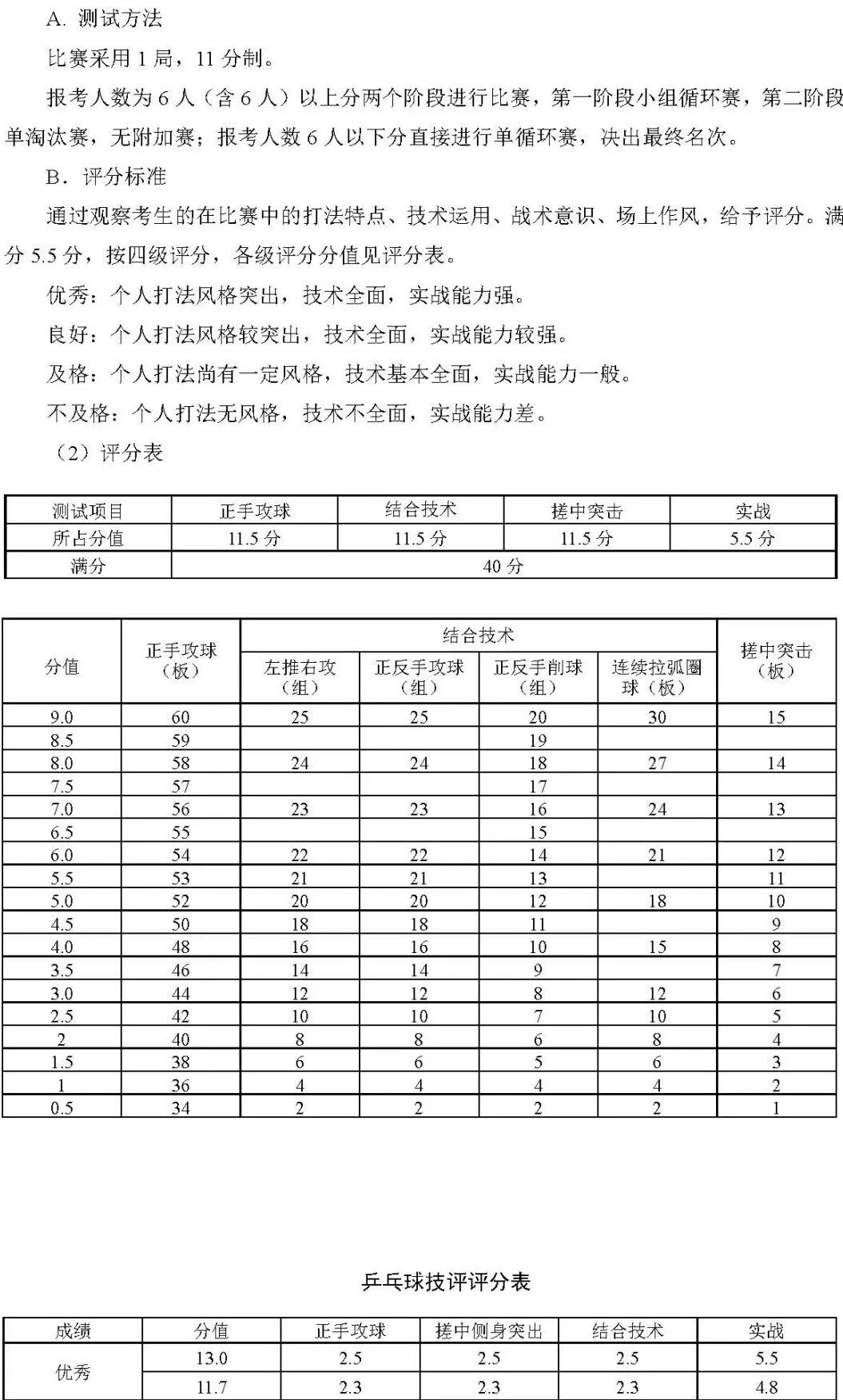 专业考试成绩的评定,按照国家体育总局和北京市有关规定执行。身体素质成绩占60%,专项技术成绩占40%,总成绩四舍五入取整。