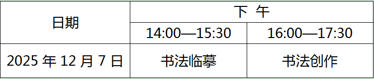 1. 考试时间:2025年12月7日,具体考试时间见下表;考试时须携带考生本人身份证和准考证入场。