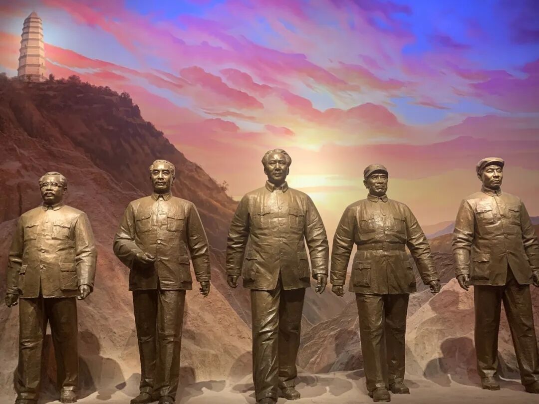 图6 革命伟人昂首挺胸,向着朝阳和心中闪烁的希望
