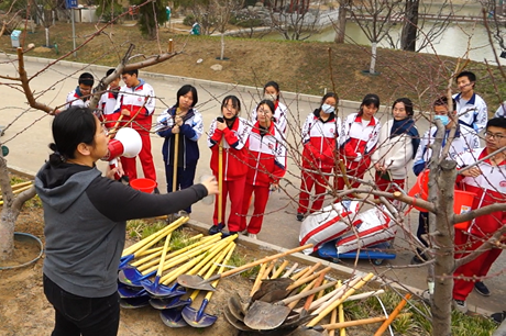 学校桃园的桃子都有哪几种?什么样的枝丫需要被剪掉?施肥有哪些技巧?……这些问题如果问初二年级的田又予同学,他都能说得头头是道!