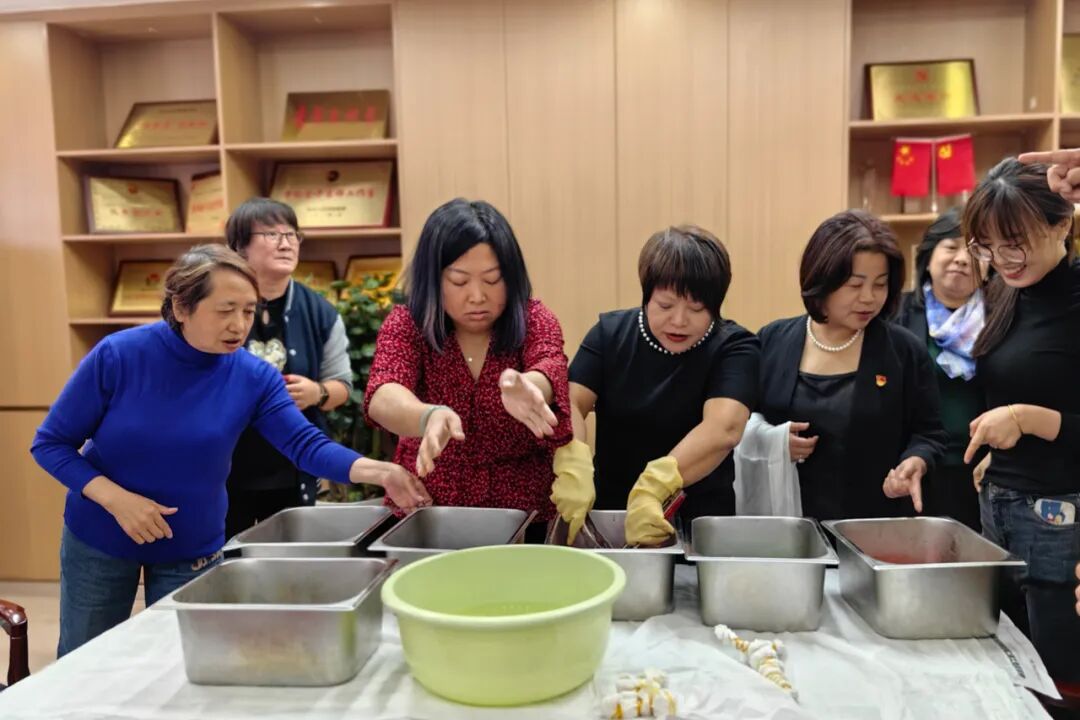 在扎染指导老师介绍中详细了解了真丝扎染历史渊源、文化内涵,认真学习了制作技巧之后,退休教师们跃跃欲试,纷纷亲自动手体验真丝扎染的奇妙制作过程,感受传统非遗技艺的魅力。半个小时后,图案各不相同的真丝丝巾就如同一朵朵美丽绚烂的鲜花绽放在各位老师们的手中。在操场上、会场里大家互相交流展示着属于自己独一无二的丝巾,欢声笑语回荡在校园,幸福的笑容洋溢在每个人的脸庞。