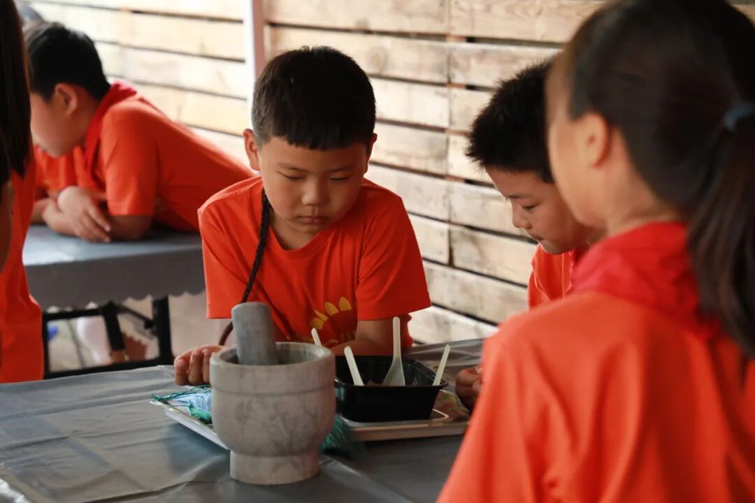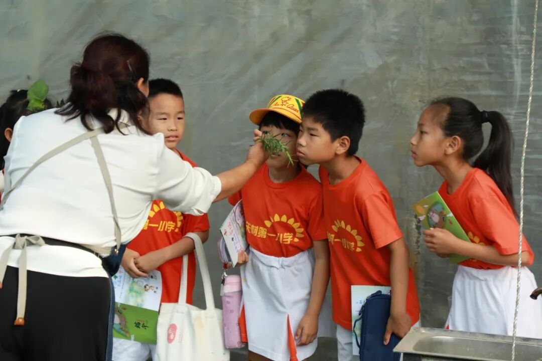 藿香、苍术、黄芩、艾叶、鱼腥草……这些总是出现在药盒上成分栏中的文字,如今变成真实的植物,呈现在孩子们面前,认真聆听基地讲解老师的分享,积极互动问答,适时讲述自己与这些中草药之间的“心酸故事”;认识了很多种药食同源的植物,哪些可以降血压、哪些可以润咽喉、哪些可以补钙、哪些又可以减脂,孩子们认真听、争着问、用心记,都想把所见所闻分享给家长,也不禁感叹中医药文化的博大精深……
