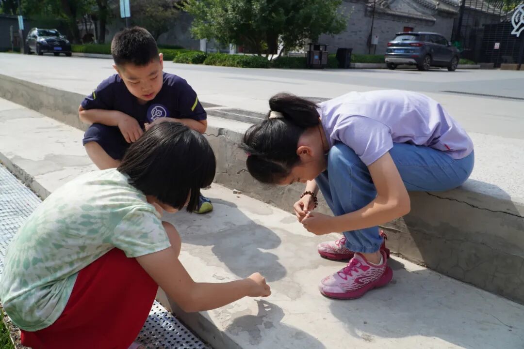 同学们来到室外,用老师提供的小磁铁细心收集着“微陨石”。