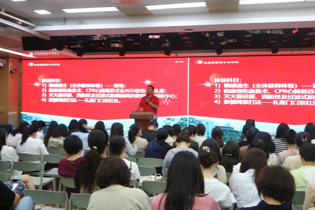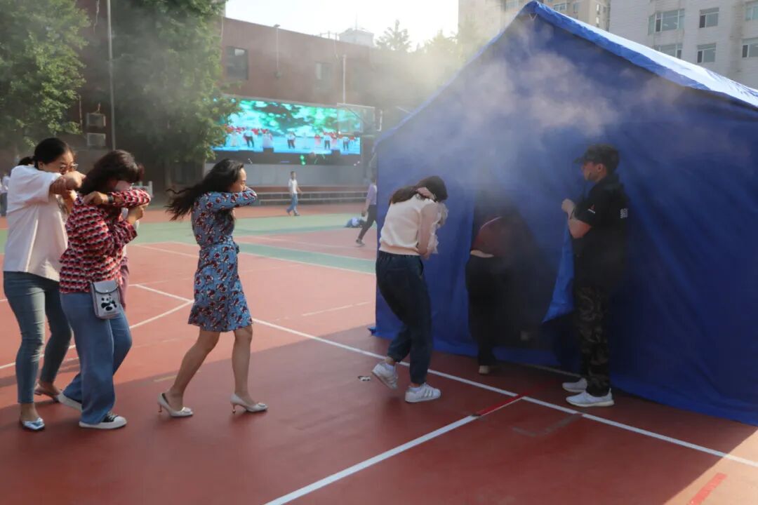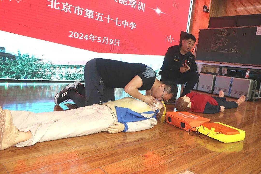 为进一步增强学校的各项安全工作,加强校园全体教师的安全技能,提高自救互救防范能力,做到在发生突发情况时,能临危不乱,熟练使用消防器材和灭火技能来确保校园和自身的安全。北京市第五十七中学特于2024年5月9日特组织全校教师进行安全技能实践活动。