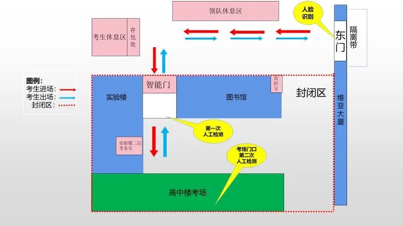 高考各考点均配备安检门,考生须主动配合,服从统一指挥。尽量避免身上金属物品的携带,以便快速通过安检门进入考点。考场配备三合一身份查证系统(出示二代身份证并进行人脸识别),考生须携带有效二代身份证,保持平时仪容仪表(便于顺利通过身份识别系统),主动接受安全检查,确保正常进入考场考试。