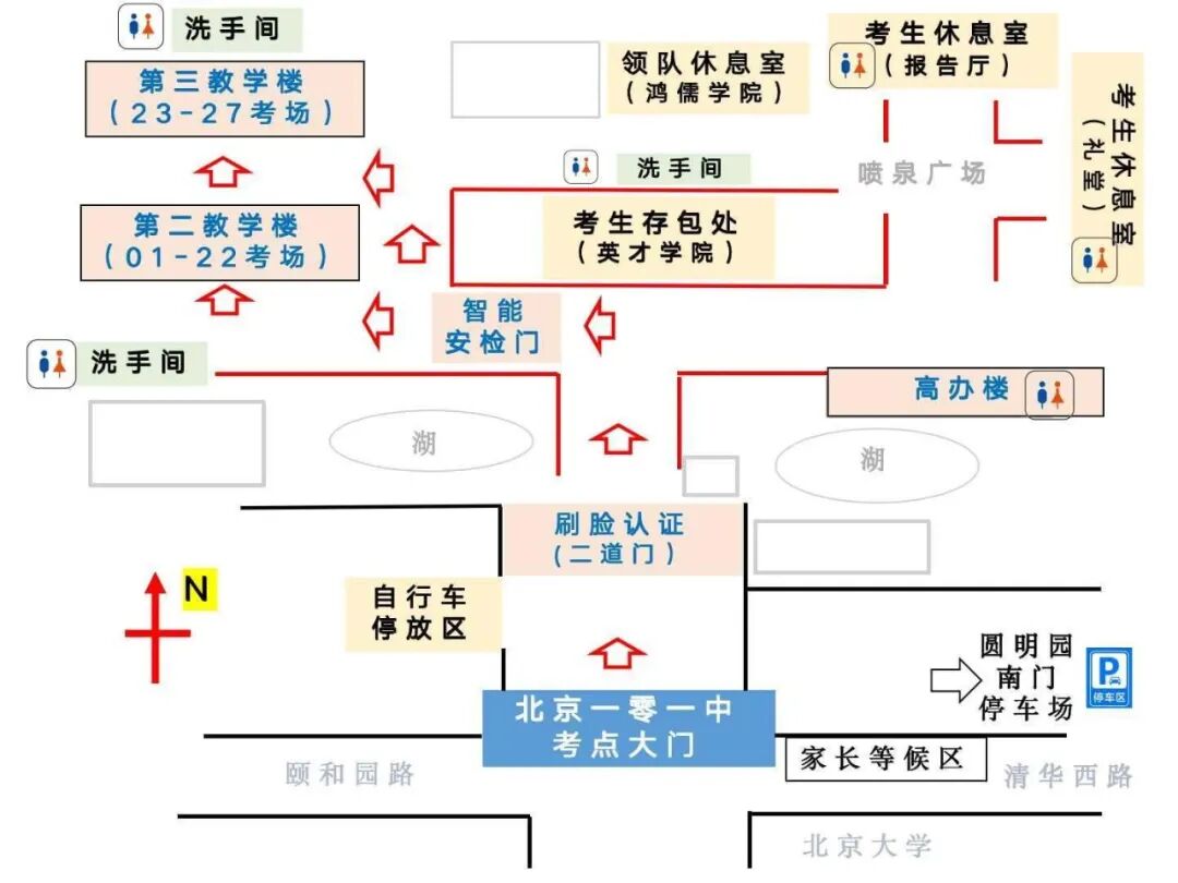 2.考前,考生应熟悉考点校所在位置,合理设计出行时间、方式及路线;考生到二道门口处查看考场分布位置,本考点从一道门到二道门约距400米,建议测算步行所需时间。注意预留足够时间提前到达考点校。