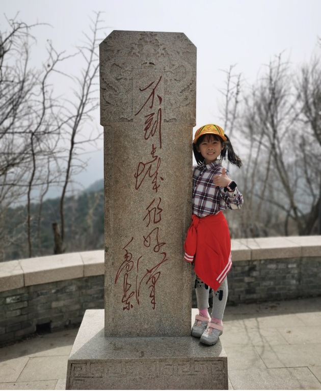 毛泽东爷爷曾题词“不到长城非好汉”,长城是中华民族的伟大象征,历经千年风雨依然屹立,它是中华民族的代表性符号和中华文明的重要象征,凝聚着中华民族自强不息的奋斗精神和众志成城、坚韧不屈的爱国情怀。走进长城,八达岭长城依山势而筑,高低宽窄不一,用整齐巨大的城砖筑成墙体外壳。我抚摸着城墙,虽然墙体经过修复,依旧难掩历史的痕迹,它是历史的见证。