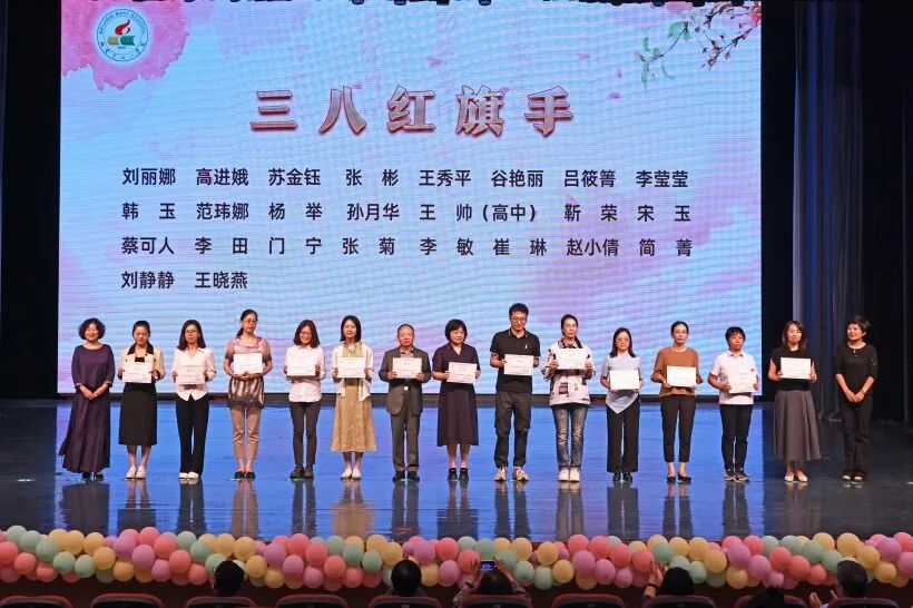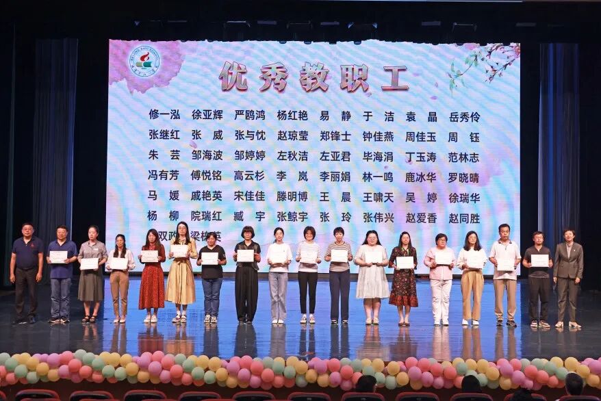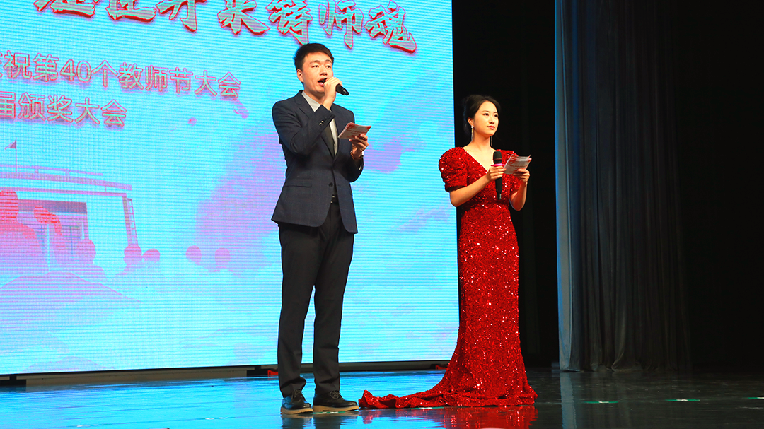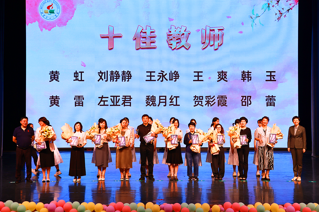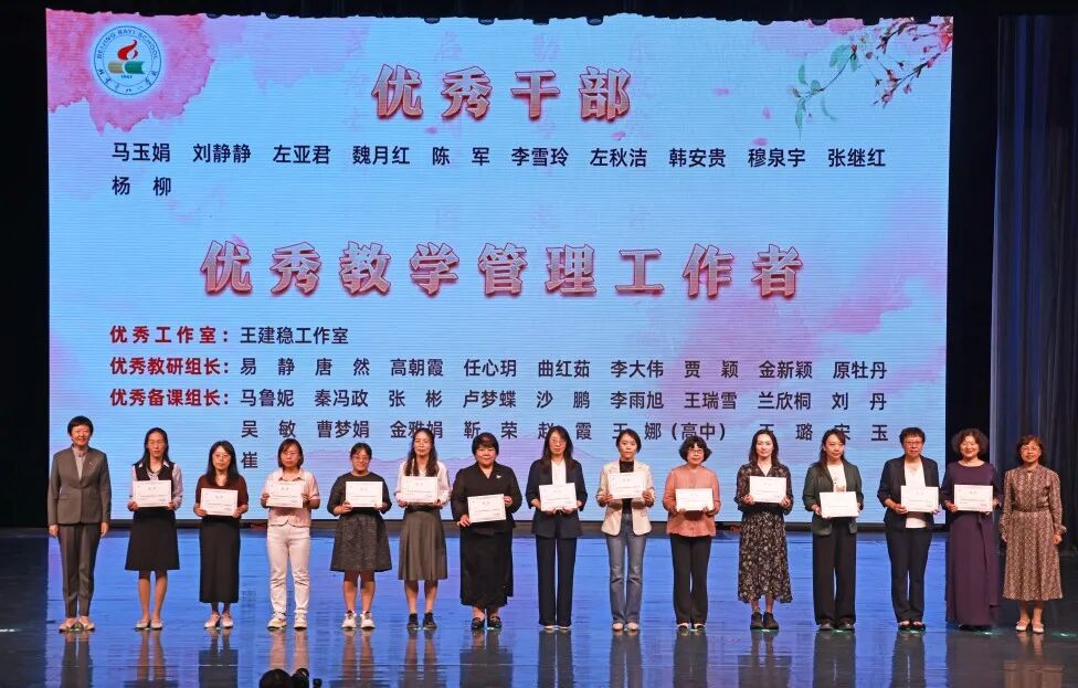 沈军校长,牛震云书记,常务副校长王华蓓,副校长马玉娟、刘荣铁、李喆、刘静静、徐洁、潘跃金出席大会,并为获奖教师代表们颁奖。大会由高中语文教师臧昊桐和来自校团委、体育中心的马腾老师主持。