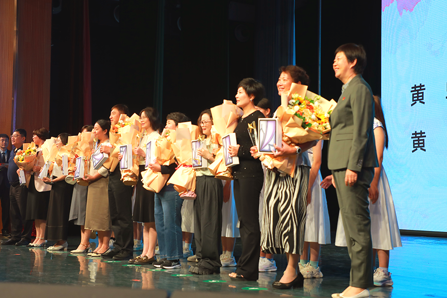 王华蓓副校长宣读优秀团队表彰决定。获奖集体代表,依次走上主席台接受表彰。