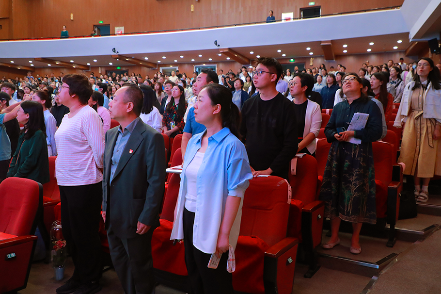 大会最后,全体教师起立,高唱八一校歌。40载春秋,诠释着广大教育工作者的师者仁心和微光如炬。军魂铸人不忘本,学科育人勇争先;科技育人为典范,生态立人做摇篮。不忘初心,八一教师守正创新,再创辉煌。继往开来,引路人们勇于奋进,开拓无前。正如校歌所唱:我们前进的步伐永远不停息!