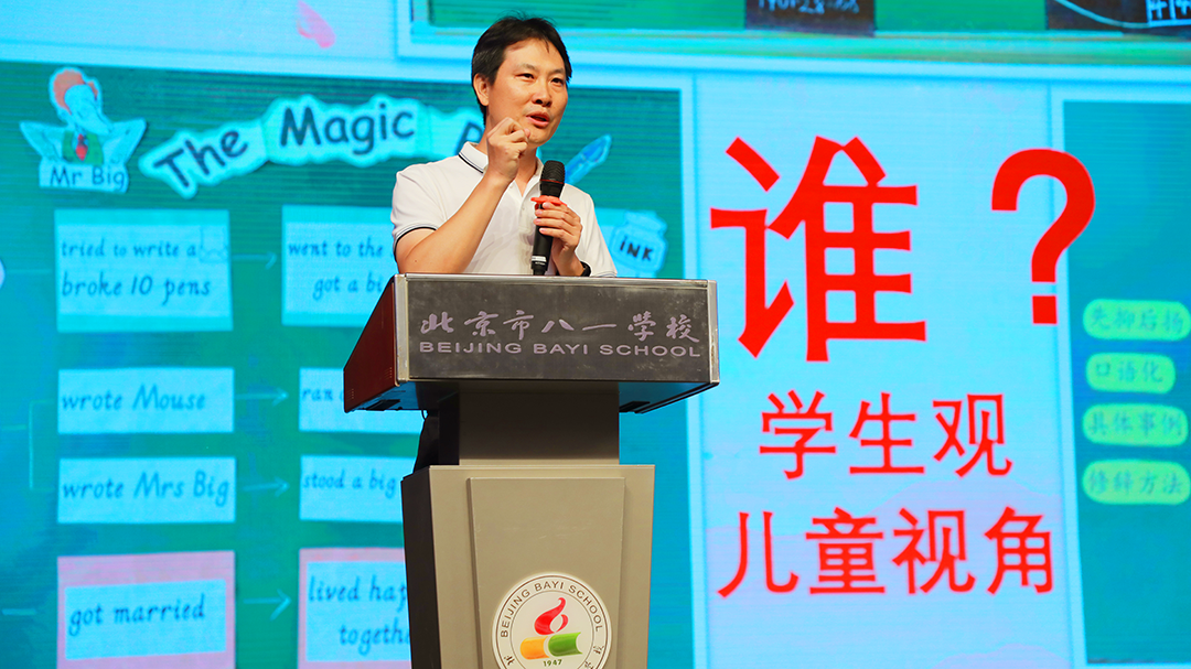 八一学校小学部今年恰逢十岁,他们守正出新,行稳致远,硕果累累;他们加强内驱学习力,增强集体战斗力。小学部张文野主任上台交流,为在场老师们讲述了小学部的故事。他展示了几张板书和表格,阐述了老师们如何突破教学困境,真正以学生视角设计与思考课堂教学,在项目实践过程中整体推进跨学科教学。